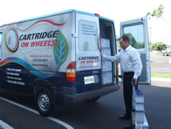 Own a mobile business that's in high demand, provides convenient services, and helps improve the environment! Cartridge On Wheels, leader in the mobile printer supply and services industry for more than 12 years, in the only source for everything businesses need in order to print. Cartridge On Wheels' mobile service allows for desktop delivery of a wide variety of ink toners, laser printer, supplies, and fax supplies. They truly are a complete service and supply solution, with more than 2,000 products available. And by giving businesses what they need, when they need it, at prices up to 20% off retail, first time customers become repeat customers. Cartridge On Wheels offers super-convenient desktop delivery of the best products. The many products we offer are every make and model of printer, copier or fax machine ranging from leading manufactures like Hewlett Packard, Lexmark and Okidata, to our own brand, Discount Imaging, of remanufactured cartridges known for their quality and affordability. We have the purchasing power of a large organization. Our supplies have been thoroughly researched allowing you to feel confident about the product you are offering. Our model allows you to focus on the sale and distribution of imaging supplies while someone else is assuring the manufacturing is running smoothly and product quality is not limited to a back office operation.
